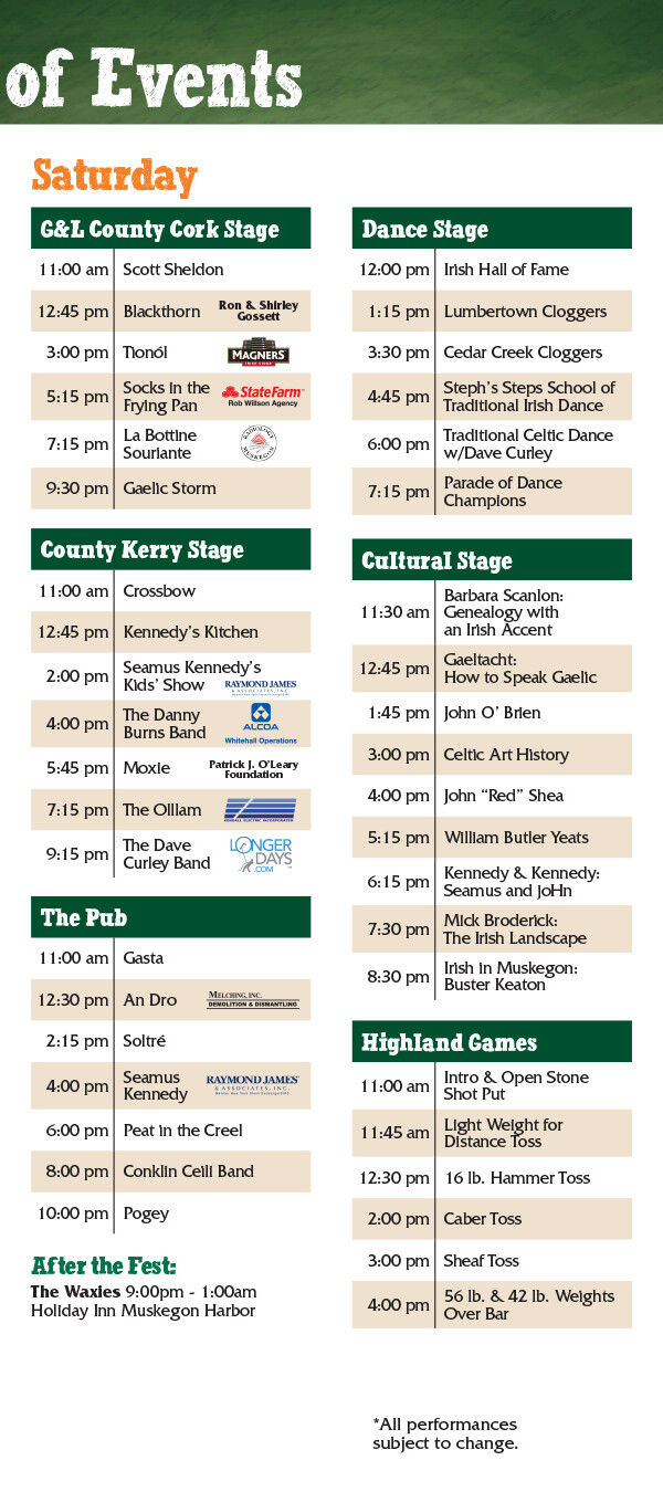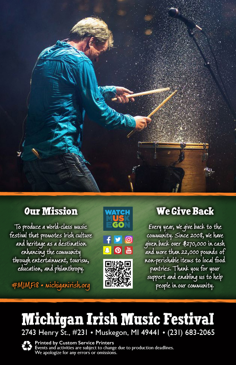 The Michigan Irish Music Festival is one of the largest Irish music festivals in the midwestern United States, taking place on the third weekend of every September in downtown Muskegon, Michigan.