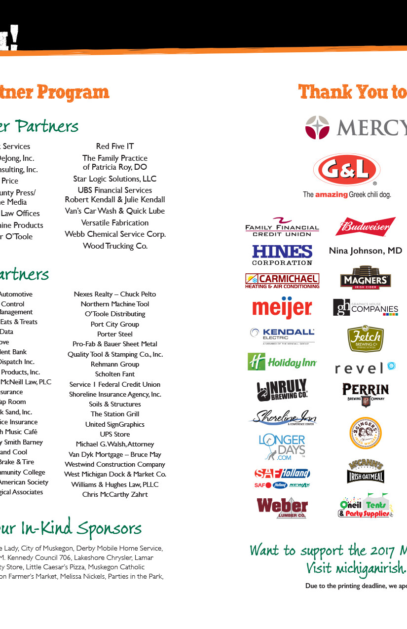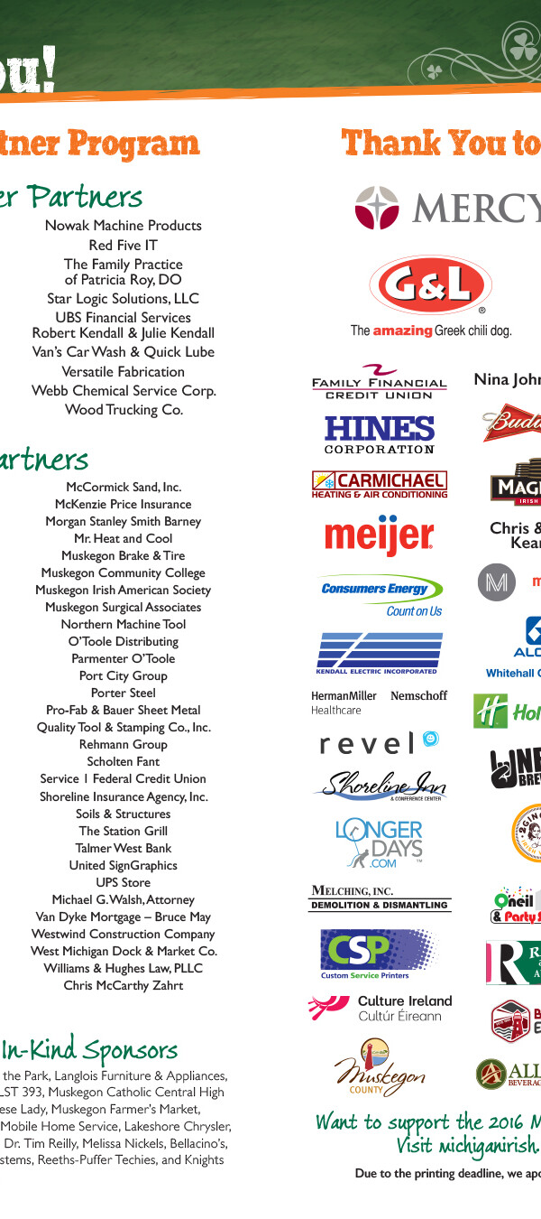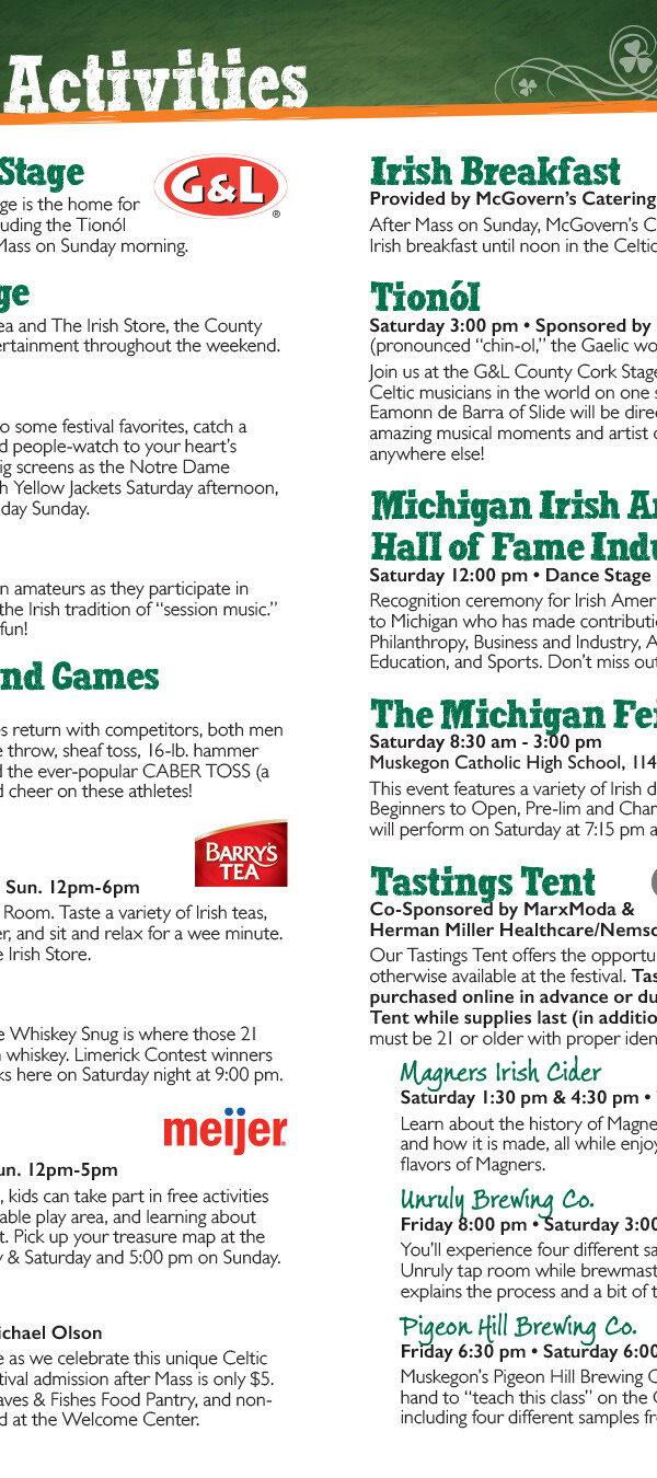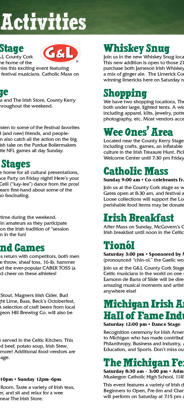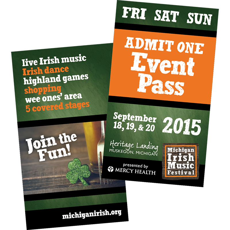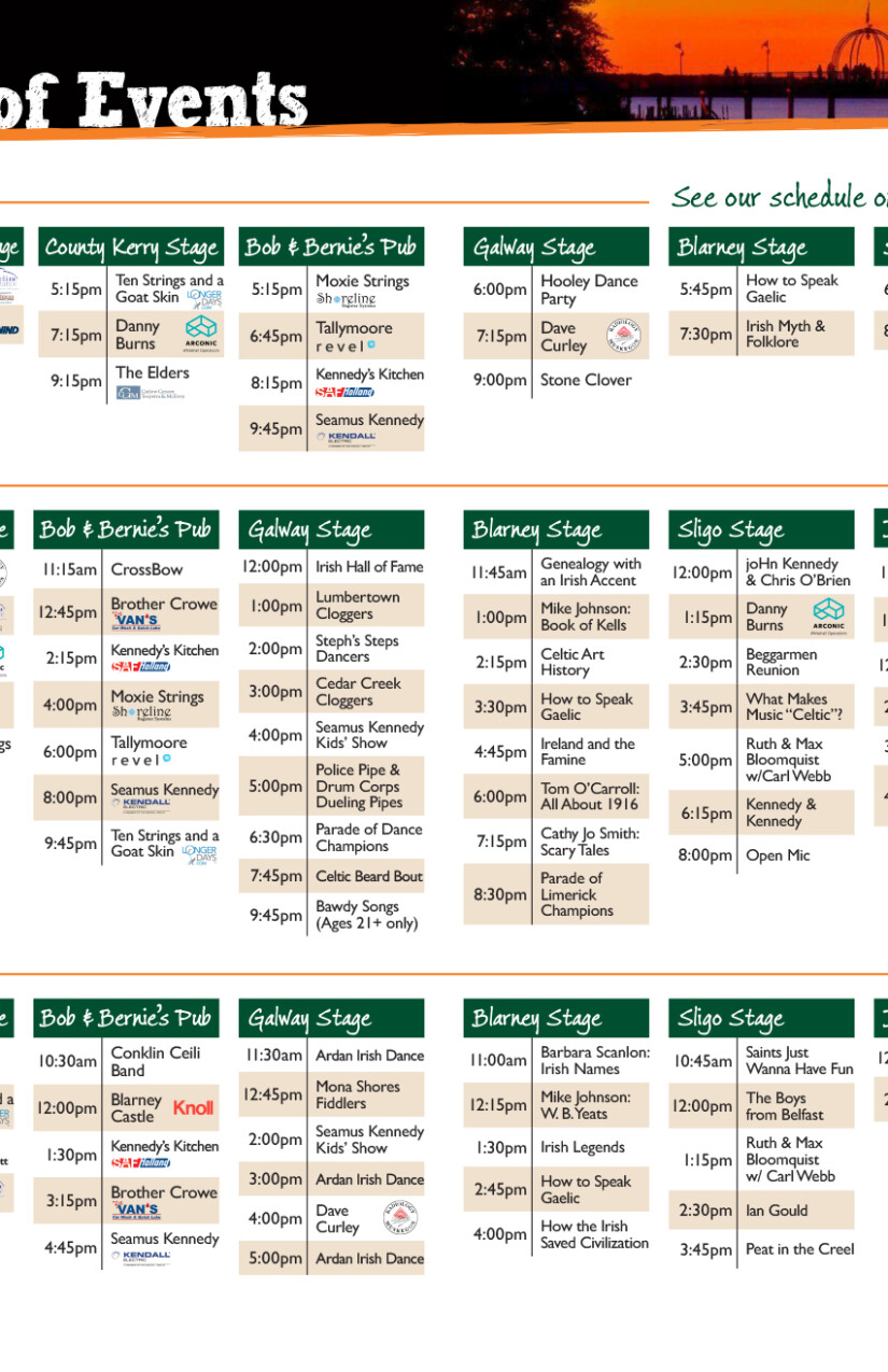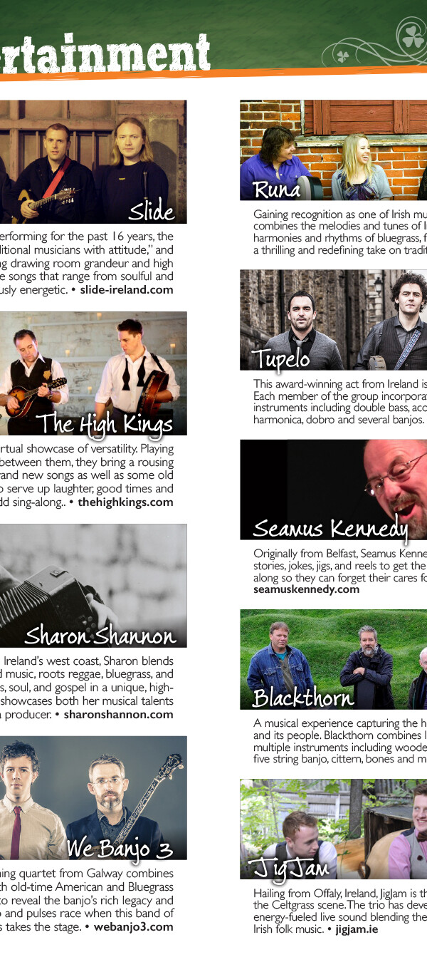 The Festival also hosts a two-day St. Patrick's Party every March that serves as a fundraiser for the main festival in September. Graphics created for the St. Pat's Party use many of the same branding elements as the main festival, but are often adapted into their own theme to differentiate it: