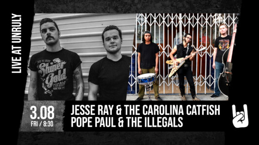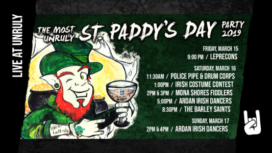Along with the poster, I also create individual graphics for each event that are used as the cover images for the show events on Facebook and displayed on a TV screen in the taproom that has a rotating slideshow of Unruly's events and promotions.